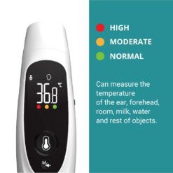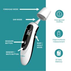 Our thermometer delivers accurate and fast temperature readings with three infrared sensors that measure forehead and object temperatures in less than a second. It’s multifunctional, allowing you to check the temperature of milk, food, and objects, and stores the last 35 temperature readings in memory for easy tracking.
